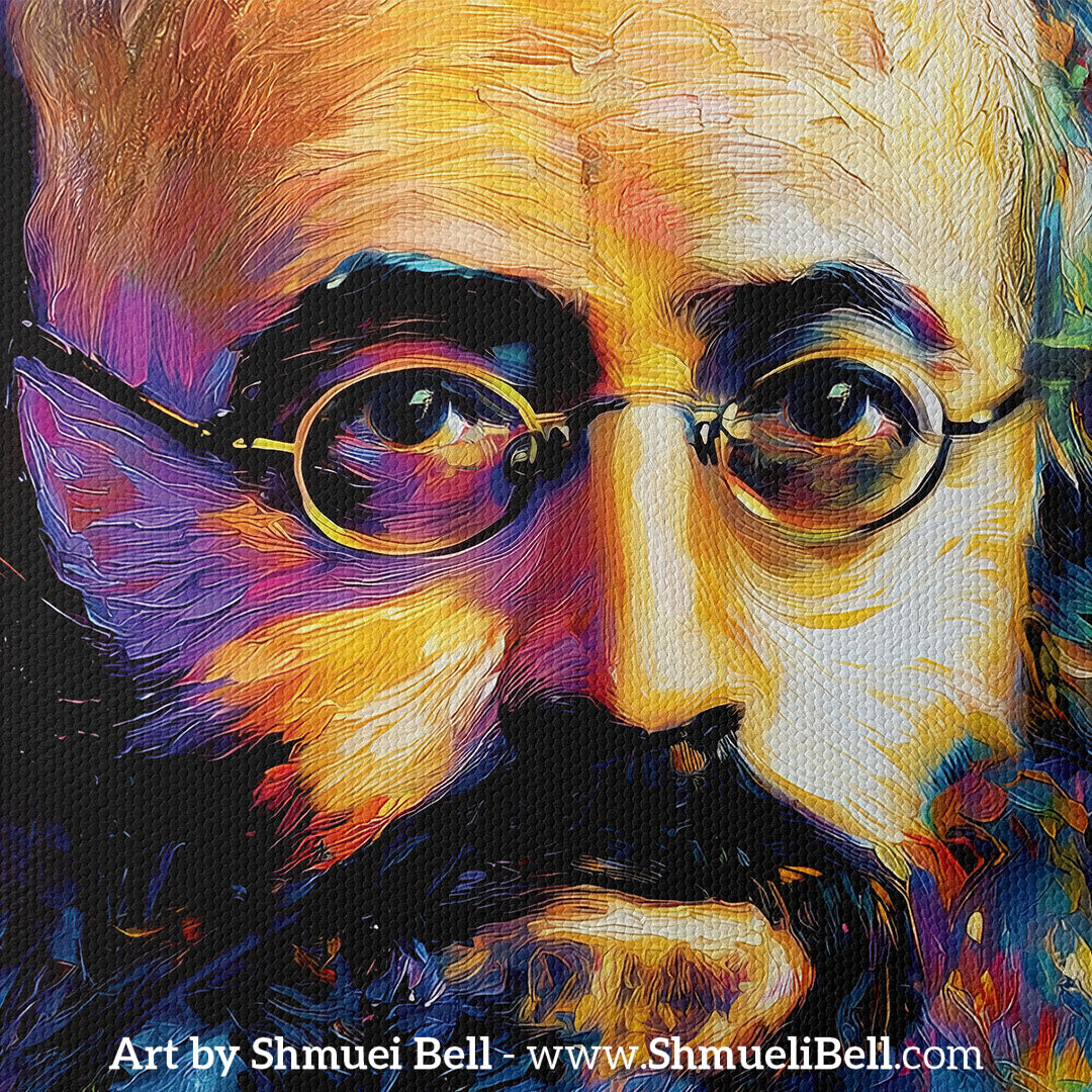 A vibrant canvas print of Rabbi Kalonymus Kalman Shapira of Piaseczna (Piasetzna) by Shmueli Bell