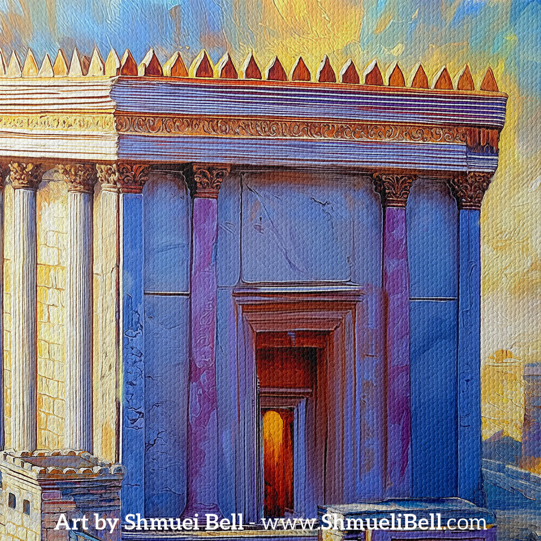 A vibrant canvas print of the Beit Hamikdash (Jewish Temple) in Jerusalem by Shmueli Bell